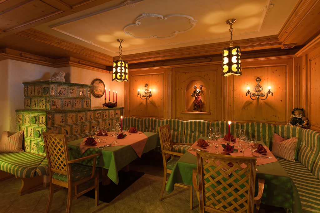 Geborgenheit finden Sie auch in unserer Tirolerstube. Der Ofen aus handgefertigten Kacheln, strahlt wohltuende Wärme aus. Einfach abschalten, entspannen und mit allen Sinnen genießen.